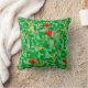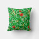 Lancer l'oreiller dans un William Morris motif textile Art Nouveau de branches de lychee et de feuilles, dans les tons de chaux et de vert profond, accentué de fruits de lychee rouge et de fleurs jaunes, sur un arrière - plan vert clair