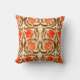 Jetez l'oreiller dans un vintage motif textile William Morris de fleurs et d'feuilles en pétanque stylisés - des fleurs dans un dégradé moyen à profond d'orange mandarin, accentué de marron chocolat, sur un arrière - plan pastel crème orange