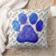 Coussin WOOF Typographie Bleu Empreinte de patte moderne c