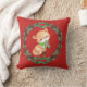 Festive Jeter des caractéristiques oreiller renard lunatique et couronne sainte sur arrière - plan rouge. Personnaliser avec nom ou message spécial sur le dos