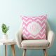 Coussin Zigzag géométrique monogramme rose et blanc Chevro