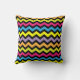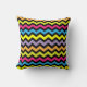 Ce coussin comporte un motif de zigzag noir à la mode de chevron avec vert clair, orange, jaune, rose, le bleu et le pourpre. Ce coussin est une addition parfaite à la chambre à coucher d'un enfant.