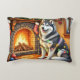 Coussins Décoratifs Alaskan Malamute Fireplace with Christmas Lights