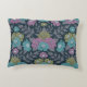 L'oreiller à jetons présente des fleurs dans les tons violet, bleu et vert olive, entourées de frondes de fougères violettes muettes et de feuilles sur un arrière - plan bleu foncé.