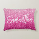 dégradé rose pâle à rose vif avec texte personnalisé dans un script de calligraphie de style brosse moderne. La parties scintillant pétillante est un graphisme art numérique qui s'imprime comme une photo. Créez votre propre coussin rectangulaire décoratif à l'accent girly glam.