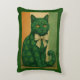 A poised emerald cat adorned with subtle clover motifs, its golden gaze calm, enigmatic, and quietly commanding, finished with a delicate bow crafted from vintage sheet music.