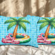 Un design d'été frais avec cet azur - motif de patio bleu clair qui comprend un palmier et quelques mignons oiseaux flamants.