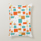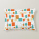 Cet oreiller moderne et coloré du milieu du siècle présente des carrés géométriques, des rectangles, des lignes et des points aux couleurs bleu turquoise, orange, crème et noir. Ajoutez cette pop de couleur que votre maison a envie !