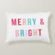 Ce coussin de vacances amusant utilise les mots "Merry and Bright" dans une police san serif moderne utilisant des couleurs vives. Au verso, vous pouvez ajouter votre photo préférée, votre nom et votre année.
