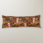 Coussins Longs Écureuils automnaux et flore sur brun foncé