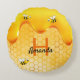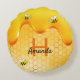 Un motif de nid d'abeilles doré et de jolies bourdons souriants. Décoré avec du miel doux dégoulinant. Ajoutez votre nom et votre lettre monogramme, les lettres orange et noire. Le nom est écrit avec un script de style écrit à la main.