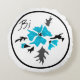 Coussins Ronds Abstrait bleu moderne fleur gris noir feuille prin