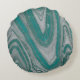 Des couches d'aqua et de minéraux gris ondulent à travers la pierre dans ce design coussin rond naturellement unique. Le look de pierre donne à ce coussin doux et confortable une touche moderne amusante avec des rayures ondulées de gris et bleu aqua qui est naturellement belle.