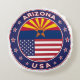 Badge de l'Arizona avec drapeau de l'Arizona et drapeau des États-Unis couleurs, forme arrondie. Emblème de l'Arizona. Sceau de l'Arizona. Collection USA Etats. Phoenix, Tucson, Mesa, Chandler, Glendale, Scottsdale, Gilbert, Tempe, Peoria, Surprise