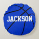 Blue Basketball Custom Round Throw Pillow : Un oreiller de lancer rond avec une zone de texte personnalisée pour vous de taper le nom de votre joueur de basket préféré, le nom de l'équipe, le numéro de maillot, ou tout autre texte. Cliquez sur le bouton "Personnaliser" pour modifier le type, la taille ou la couleur de la police. Ceux-ci font de grands cadeaux pour les joueurs de basket et les fans, surtout pour ceux aux couleurs bleu d'équipe!