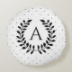 Coussins Ronds Black And White Laurel Monogram Polka Dot Pattern