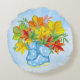 Cute blue and white polka-dot rain boots with autumn leaves.
