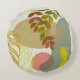 Design botanique avec des couleurs magenta, vert, jaune et marron et des éléments floraux.