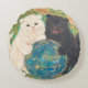 The unique round shape of this pillow perfectly echoes the "cosmic ball" at the center of the artwork, creating a harmonious and balanced design. Every detail of the original masterpiece—from the soft, swirling fur of the guardians to the radiant gold leaf and mineral pigment accents—is beautifully captured on the fabric.