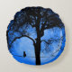 Fantastique pleine lune bleue avec un chat noir sur un fil le regardant