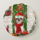 Chih Tzu Dog Noël assis à l'extérieur de la maison décorée avec la couronne de Noël, le sapin de Noël est une idée cadeau de Noël parfait pour les amoureux de les chiens.