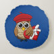 Coussins Ronds Chouette mignonne avec béret rouge et boîte cardia