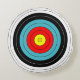 Coussin rond avec une cible de tir à l'arc sur les deux côtés avec dix anneaux concentriques d'or, rouge, bleu, noir et blanc. Personnalisable . Grand coussin pour les amateurs de sport de votre vie.