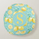 Coussin avec accent ronde avec un motif citron jaune mignon sur bleu clair. Personnalisez avec votre monogramme/initial des deux côtés.