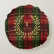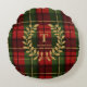 Coussins Ronds Classic Red Christmas Plaid With Monogram Wreath