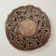 Conception ronde indienne nord-américaine légèrement affligée pour un regard plus antique sur un arrière - plan de terre cuite.