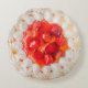Comprend un court-cake aux fraises avec un centre de fraises rouges scintillantes entouré de bouffées de crème fouettée en forme de fleur. En couleurs ou en rouge et blanc.