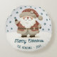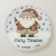 Cute Santa Clause Snowflakes Drawing Christmas Holiday Round Pillow. A cozy, Boho-inspired Christmas home decor featuring cute drawing of a Santa Claus on a snowy hill. Soft earthy tones such as terracotta, cream, and green. Delicate snowflakes are scattered across the pillow, adding a touch of winter magic. The text 'Merry Christmas' is in elegant script. The overall aesthetic exudes a warm, rustic, and modern Bohemian feel, perfect for a stylish yet festive holiday look. Add your name and year.