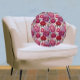 Roses rouges, pivoines roses et lilas violets sur un arrière - plan blanc créent un bel oreiller rond à l'allure vintage.