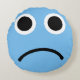 Vous vous sentez bleu ? Ce coussin ou coussin est ici avec un visage triste sympathique. Comprend une illustration de style dessiné à la main d'un émoticône bleu triste ou d'un émoticône avec de grands yeux google et un sourcil.
