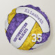 Cette mignonne équipe de volleyball couleurs coussin pour les filles avec l'équipe personnalisée et le nom de la mascotte de l'école comprend l'image stylisée réaliste d'un volleyball violet, or et blanc qui a un motif kaléidoscopique floral artistique mélangé avec ses panneaux violet et or - son nom et son nom d'équipe sont personnalisables, tout comme son numéro de maillot - par katz_d_zynes