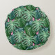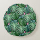 Une coussin ronde à l'ambiance estivale. Backgrond est un motif de feuilles philodendrons exotiques tropicaux en vert. Image numérique peinte à la main.