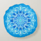 Coussin rond dans un mandala texturé batik / motif médaillon dans les tons aqua, turquoise et bleu cobalt sur un arrière - plan turquoise