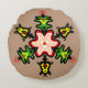 This unique hand-drawn mandala features a rustic, artistic charm with natural variations in the pattern alignment. The vibrant green and red floral design brings a fresh, organic feel to your home decor."