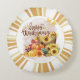 Le coussin rond parfait pour les vacances de Thanksgiving d'accueillir un et tous - celui-ci présente une police audacieuse souhaitant à chacun un "bon thanksgiving" couplé à une cornucopie remplie de citrouilles colorés et tournesols. Choisissez votre tissu de votre choix avant la commande.