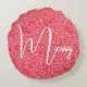 Joyeux dans une écriture blanche chic sur un motif de gribouillis et de points blancs, ce coussin rouge rond est parfait pour décorer votre maison pour les vacances. CORRESPONDRE des articles dans notre magasin.