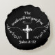 Ce coussin rond a une police d'impression romane avec des lettres blanches avec le verset de la Bible KJV "John 8:32" avec des ailes et halo plus une couronne de trône sur une croix. Ce verset fait référence au Livre de Jean 8e chapitre montrant le 32e verset de ce thème de citation de la Bible de la Bible du Roi Jacques. Ce coussin est fabriqué avec un tissu de haute qualité nos coussins sont doux et sans rides le couvercle est lavable à la machine.