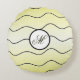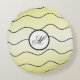 Grade A cotton round pillow in a beautiful butter yellow ombré fading from darker yellow on the top and bottom to a pretty muted yellow in the center. Abstract black line art accent the modern black and white centerpiece with your personalized family / surname initial in black calligraphy text with a subtle matching yellow drop shadow.
