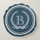 Conception de monogramme avec décoration de couronne de laurier en forme arrondie rayée sur arrière - plan bleu