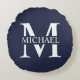 Coussins Ronds Monogramme et nom personnalisés bleu marine