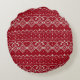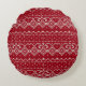 Festive ronde Jetez un oreiller avec un motif tricot scandinave / norvégien en rouge et blanc.