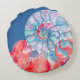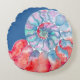 Coussins Ronds Nautilus gris rouge bleu sur bleu foncé