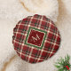 Coussins Ronds Noël Russe Plaid Rouge Monogramme Nom Fête