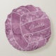 Ce volleyball unique thème coussins ronds pour elle avec un look texturé, monochromatique rose poussiéreux / couleur prune caractéristiques l'image d'un volleyball stylisé - un doodle motif de paislies, fleurs et plumes en blanc couvre de nombreux panneaux de volleyball - personnalisez avec le nom de l'athlète et monogramme sur le devant et le dos - par katz_d zynes