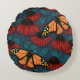 Coussins Ronds Papillon monarque sur des fleurs rouges
