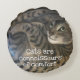 Un chat tabby gris mignon et unique, recouvert de peinture sur la pierre. Le blog humoristique cat cite les deux côtés, "No Cat No Life" et "Les chats sont des connaisseurs du confort".